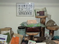 A番 『釜煎り薬草茶』 20袋 ¥2,000.- 急須に入れても、やかんで煎じても大変香ばしくて美味しいです。 柿の葉・どくだみ・くこ・枇杷・ケツメイシ・生姜・柚子・スギナ・高麗人参等を釜煎りして作った物です。 |